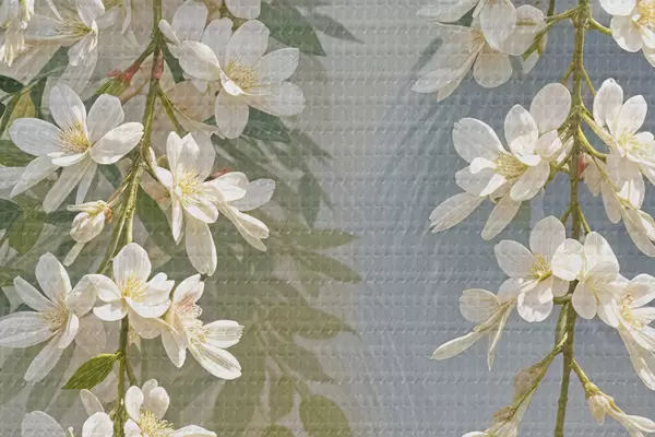 Okrągły obraz Wiszące białe kwiaty glicynii z zielonymi liśćmi na rozmytym tle Nr r39530
