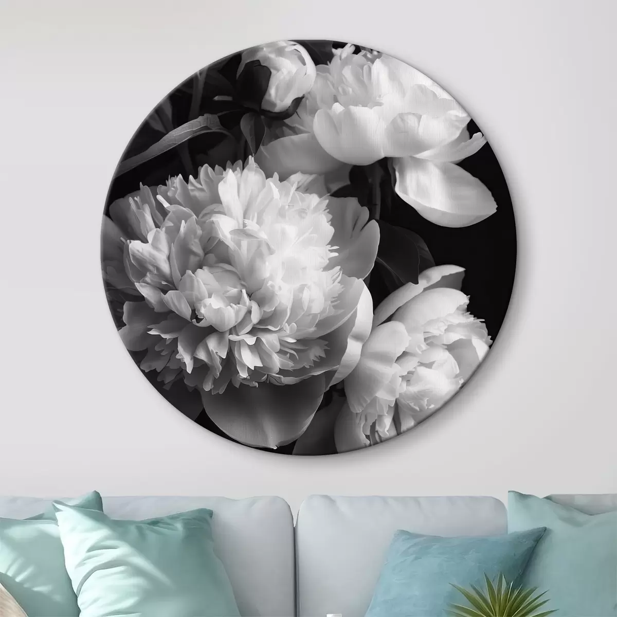 Okrągłe obrazy Czarno-białe piwonie r39547