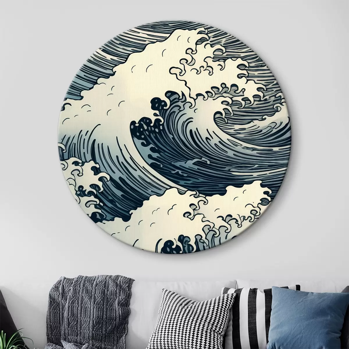 Okrągłe obrazy Akwarela fal morskich w stylu orientalnym r39569