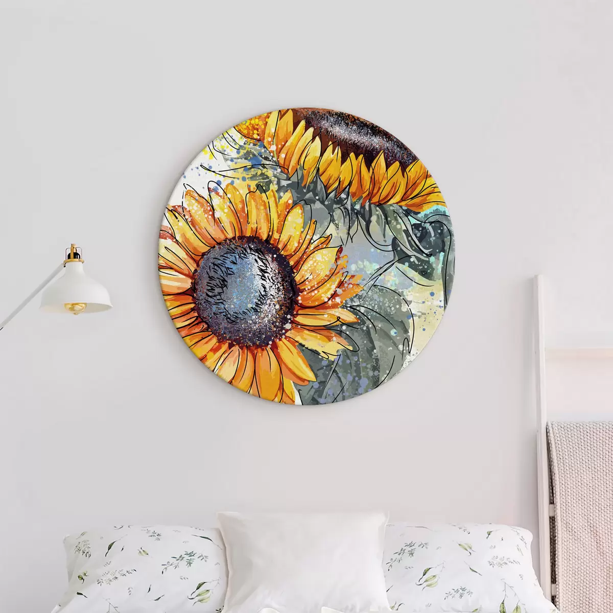 Okrągłe obrazy Jasne słoneczniki, efekt akwareli z rozpryskami farby r39585