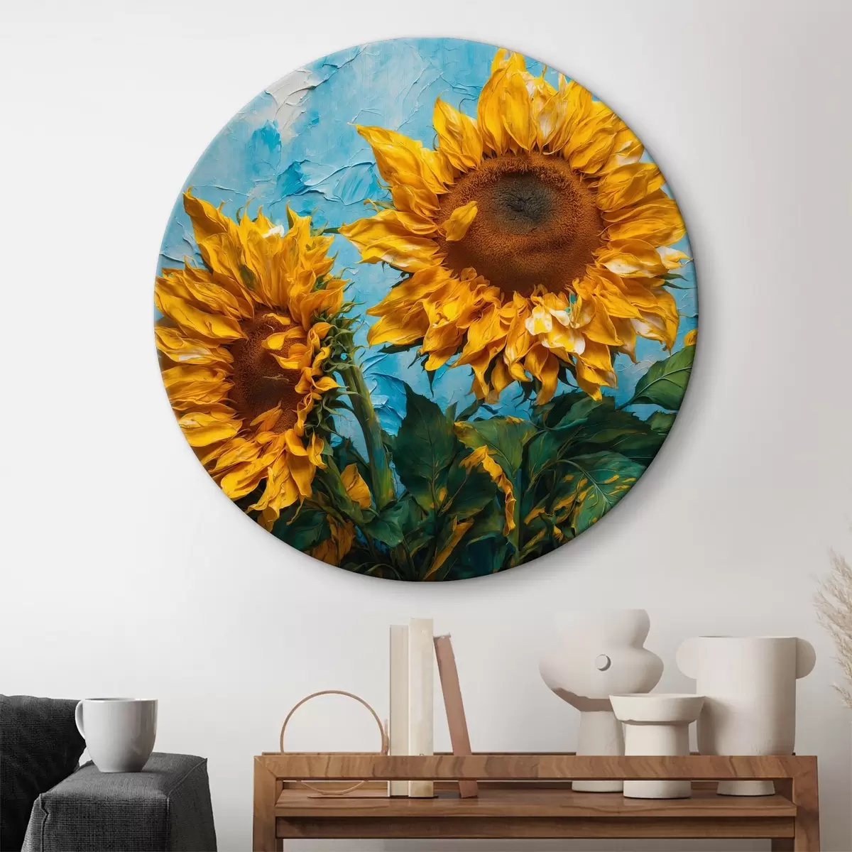 Okrągły obraz Słoneczniki na oleistym tle Nr r39594