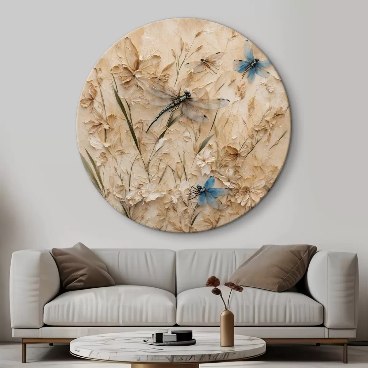 Okrągły obraz Ważki na beżowym tle Nr r39600