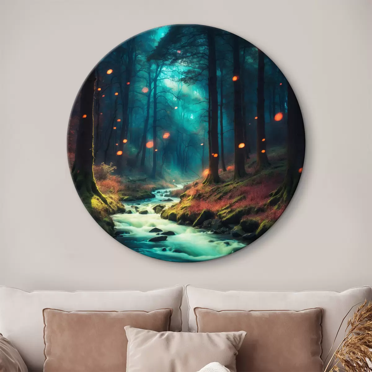 Okrągły obraz Strumień w fantastycznym lesie Nr r39616