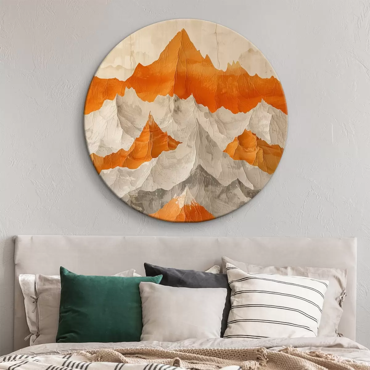 Okrągłe obrazy Abstrakcyjne pasma górskie w kolorze pomarańczowym i beżowym: trompe-l'oeil z rzeźbionymi detalami r39629