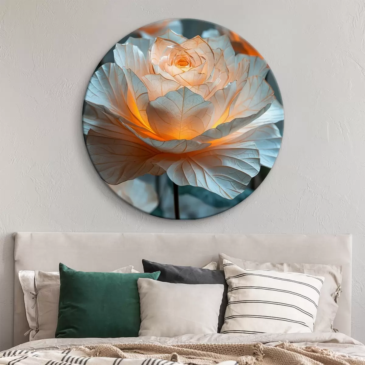 Okrągły obraz Zdjęcie pod dużym kątem gigantycznych róż z białego papieru Nr r39646