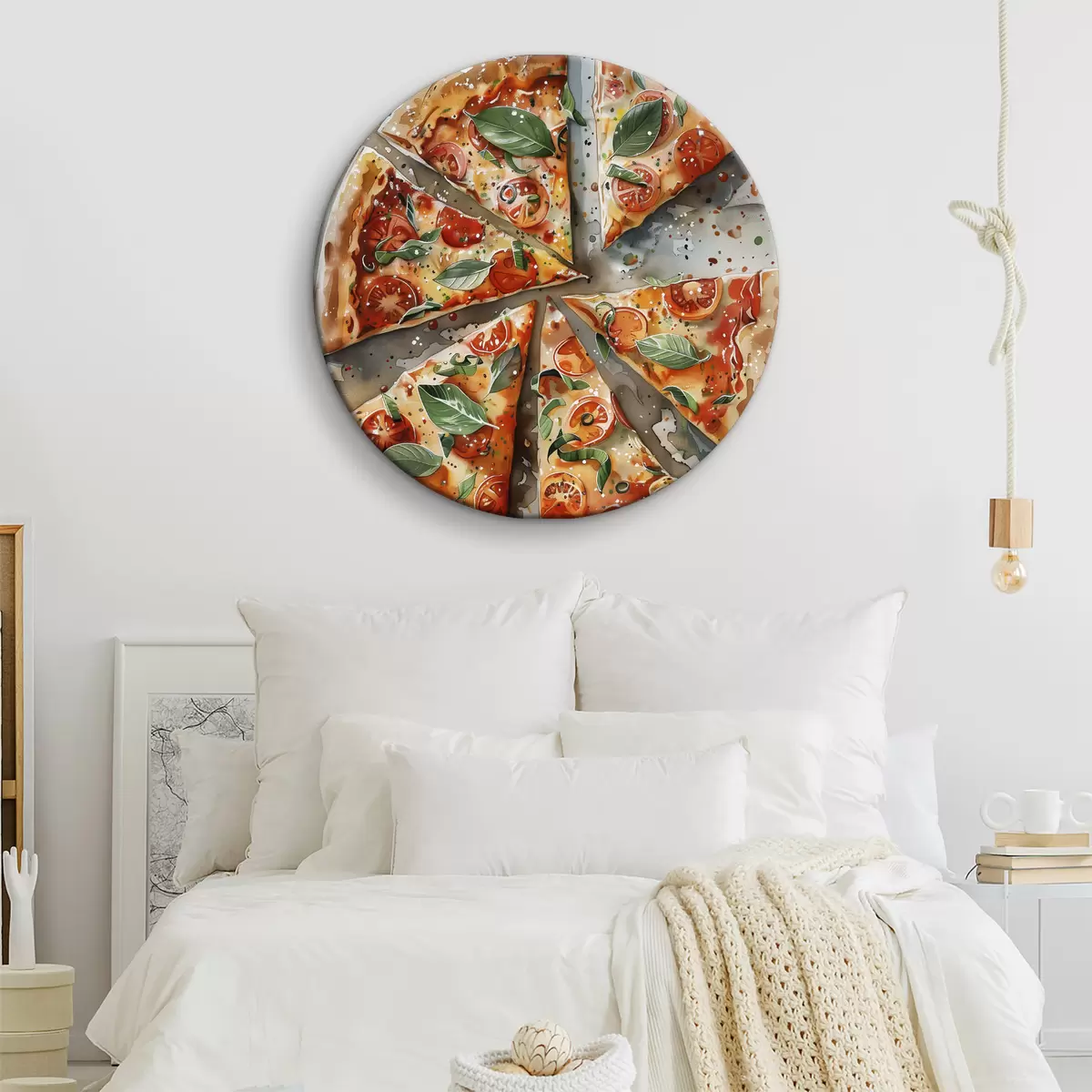 Okrągły obraz Pyszna włoska pizza, akwarelowa sztuka kulinarna, margarita, pomidory Nr r39703