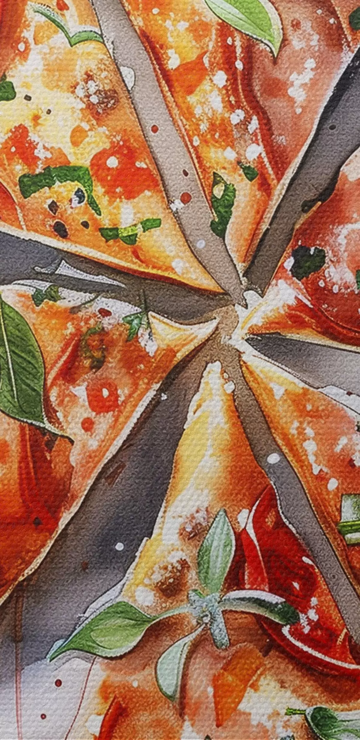 Okrągły obraz Akwarela pizza, pyszna, pomidory i ser, sztuka kulinarna, drewniany stół Nr r39704