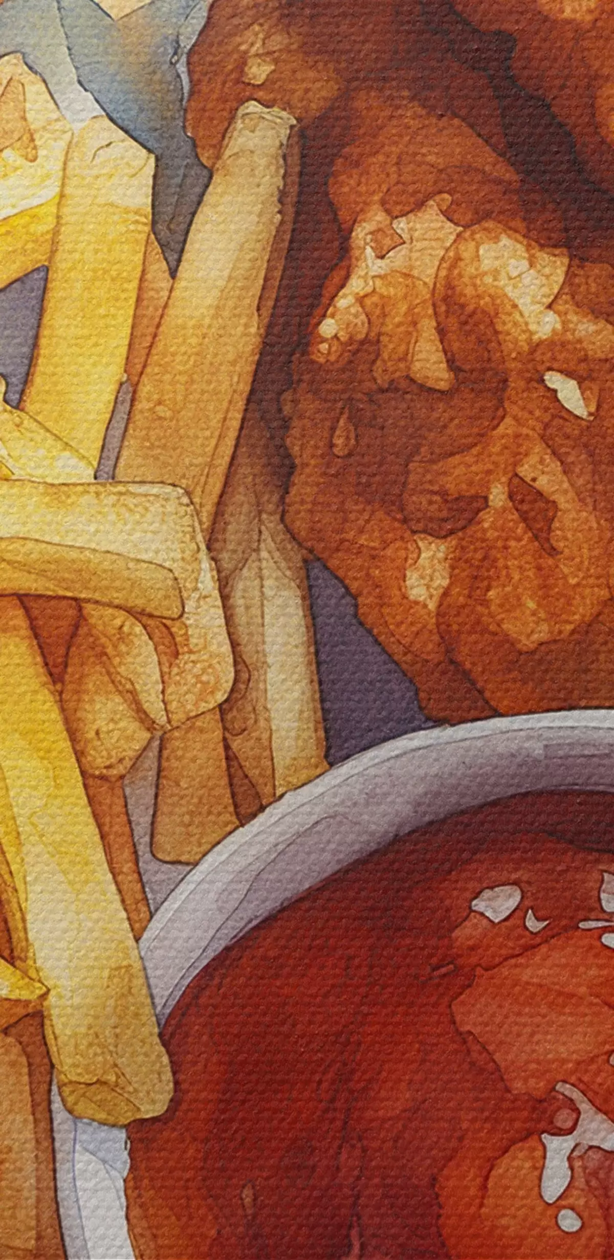 Okrągłe obrazy Akwarela street food, frytki z pieczonym kurczakiem, pyszne r39709