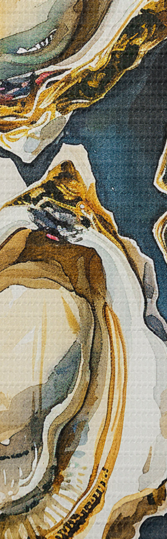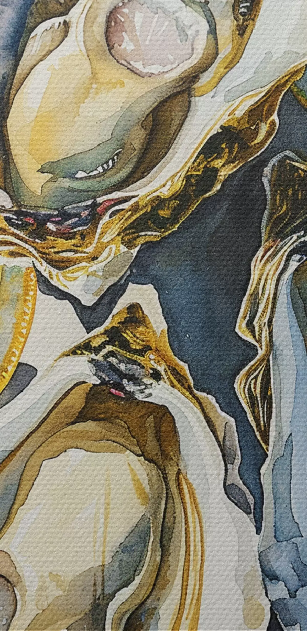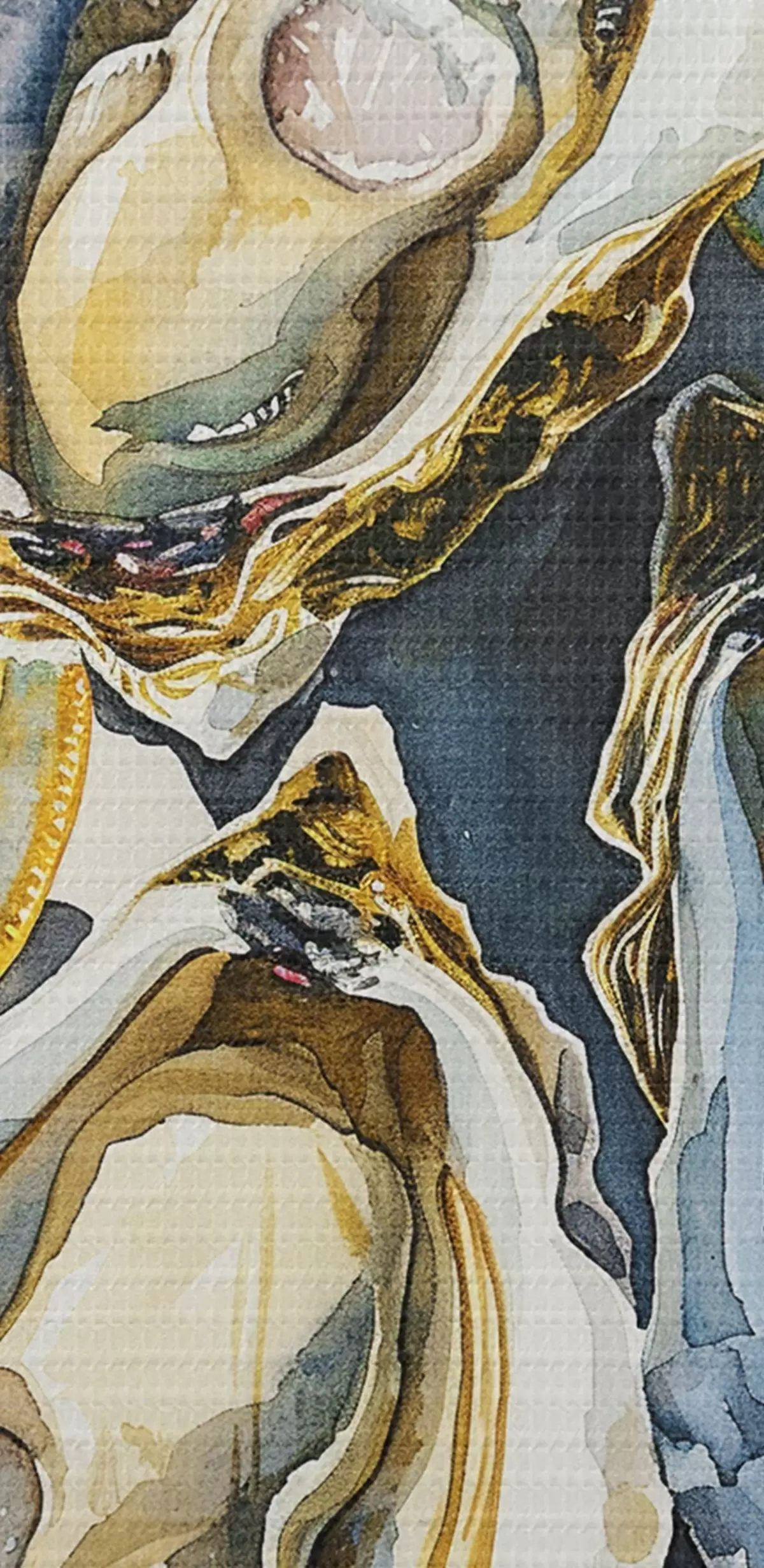 Okrągły obraz Eleganckie ostrygi na talerzu, akwarela, cytryny, naturalne kolory, śródziemnomorski Nr r39711