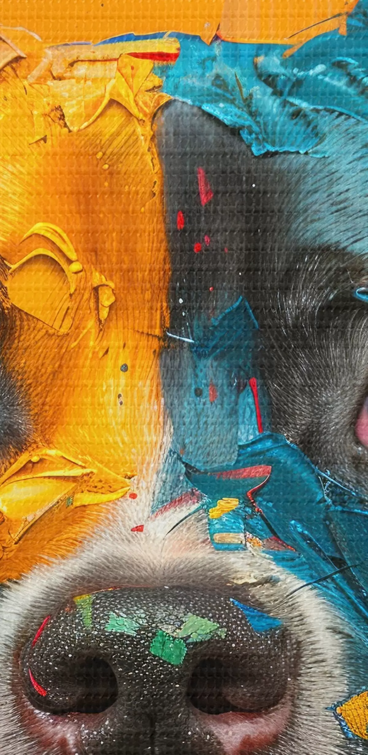 Okrągły obraz Portret Pitbulla z żółtymi i niebieskimi pociągnięciami pędzla olejnego Nr r39722