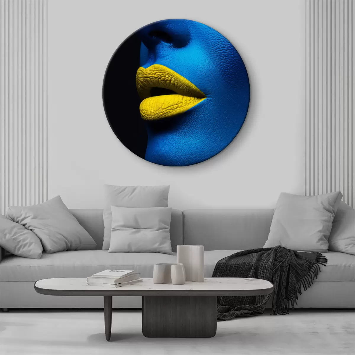Okrągłe obrazy Niebieska twarz z żółtymi ustami r39733