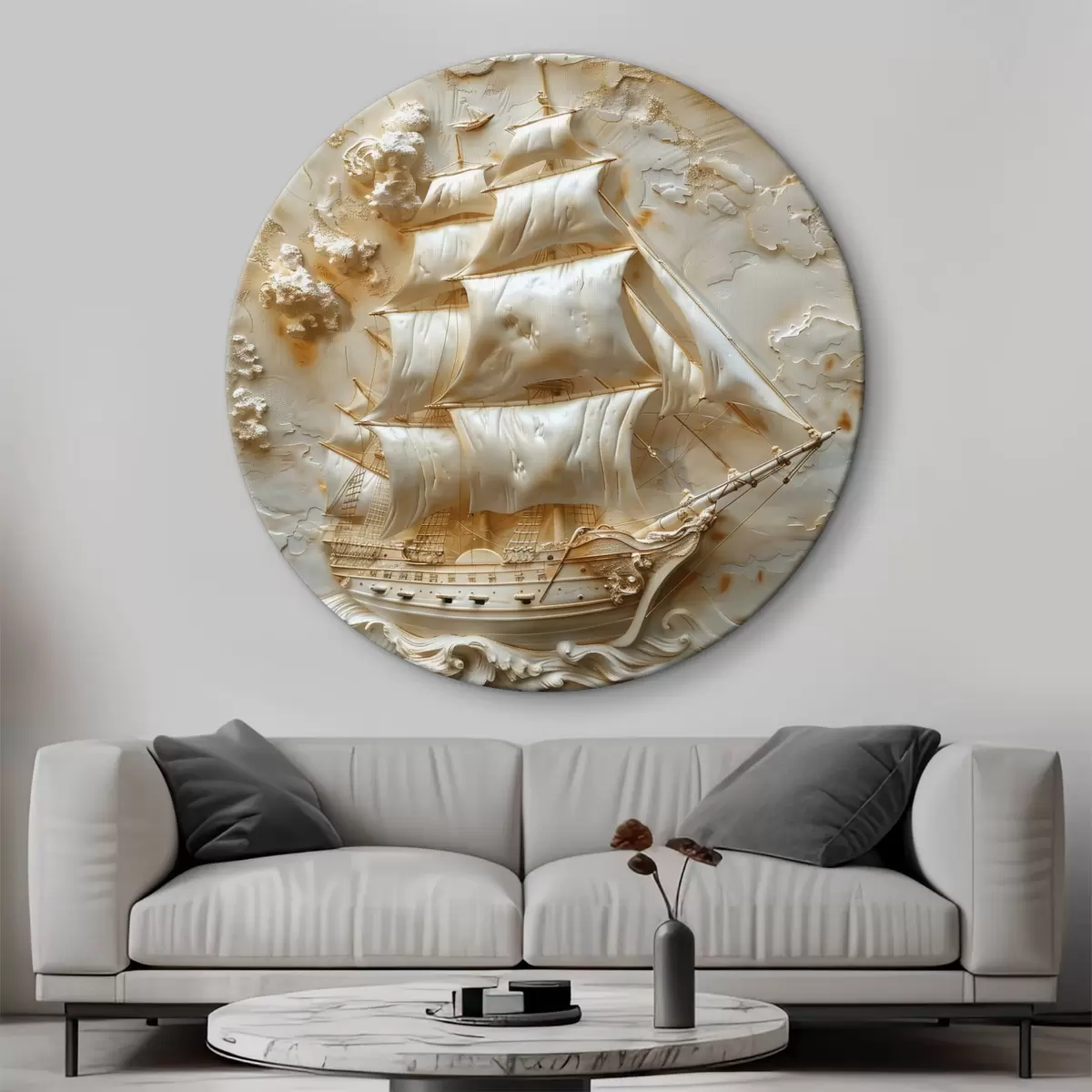 Okrągłe obrazy Płaskorzeźba przedstawiająca statek płynący po morzu r39757