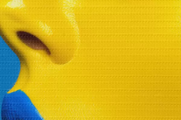 Okrągły obraz Twarz dziewczyny w odcieniach niebieskiego i żółtego Nr r39759
