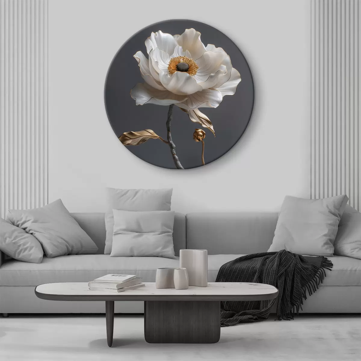 Okrągły obraz Pełen wdzięku biały lotos kwitnący z kamienia Nr r39765