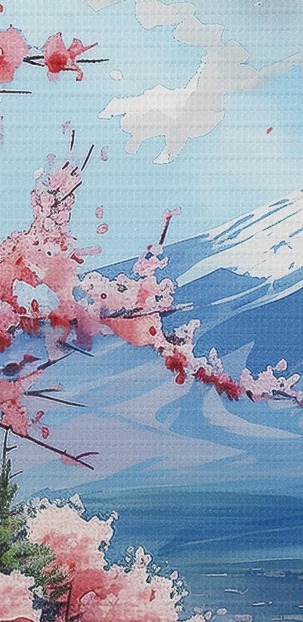 Okrągłe obrazy Górski krajobraz Fuji, wiosenna kwitnąca przyroda, wiśnie, język japoński r39777