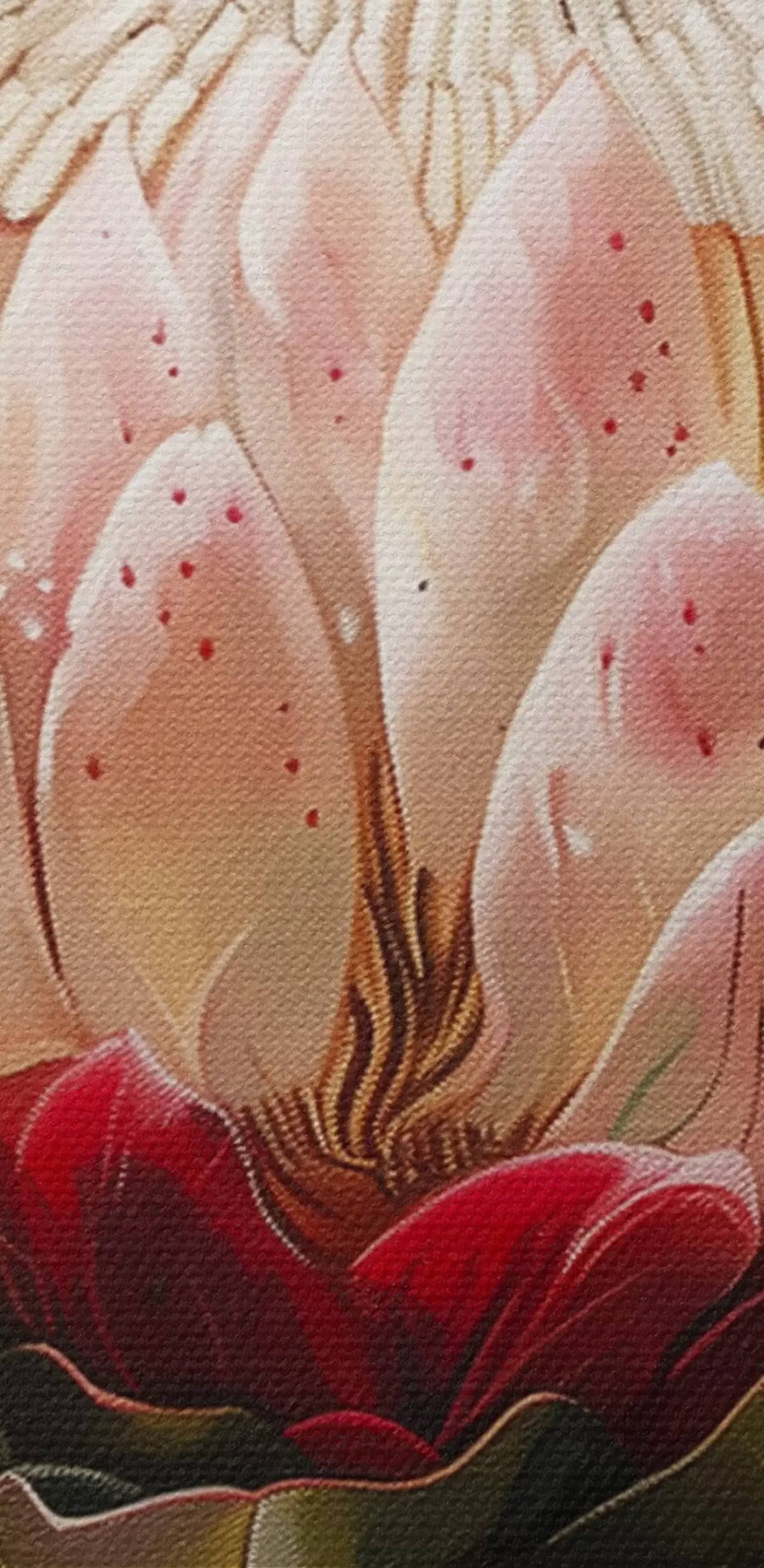 Okrągły obraz Kwiat Protea, rysunek akrylowy, kwiatowe, miękkie naturalne kolory Nr r39780