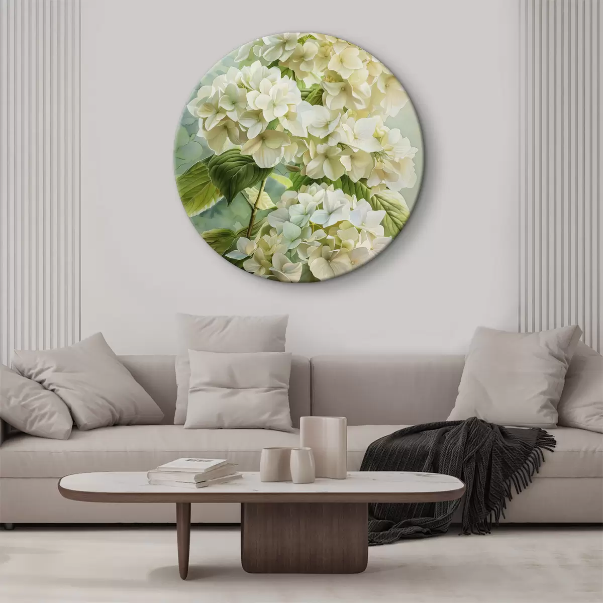 Okrągłe obrazy Kwiat hortensji, kwiatowy, miękkie naturalne kolory, rysunek akwarelowy r39782