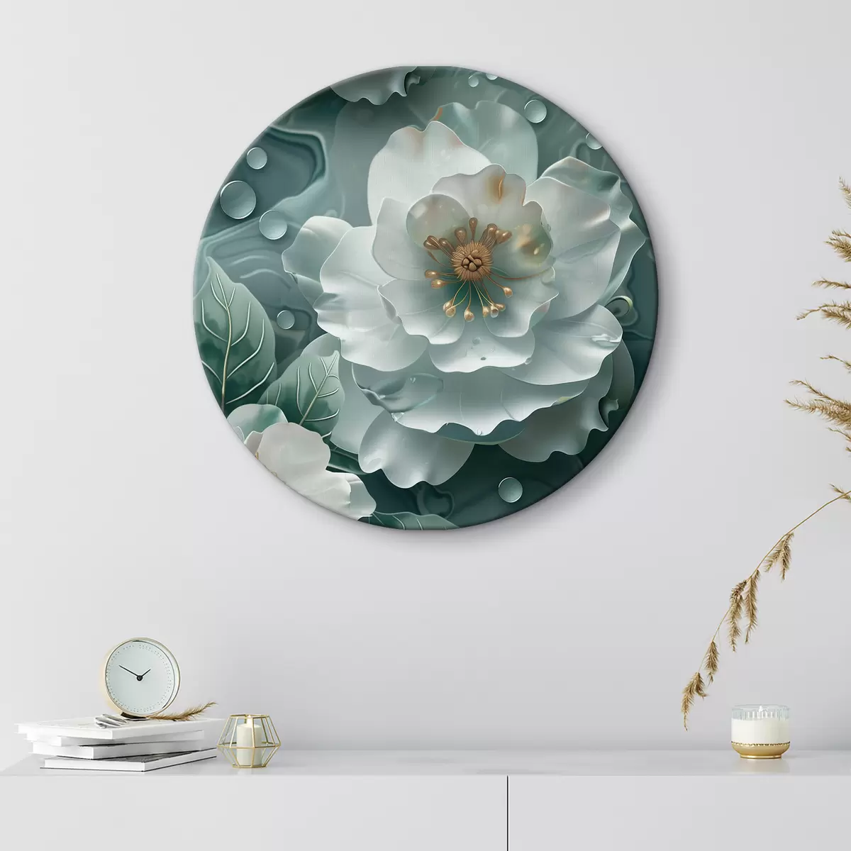 Okrągły obraz Duże kwiaty i krople rosy Nr r39792