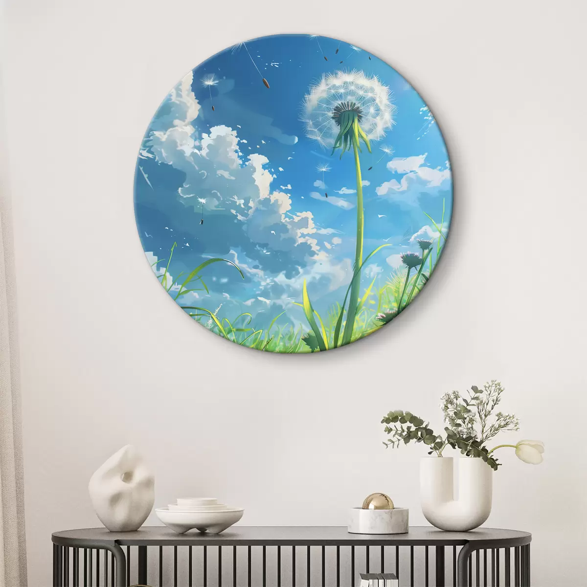 Okrągły obraz Mniszek lekarski na polu Nr r39794