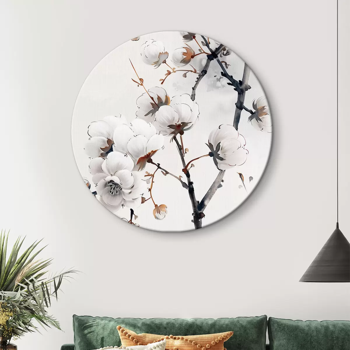 Okrągłe obrazy Rysowane gałęzie bawełny r39804