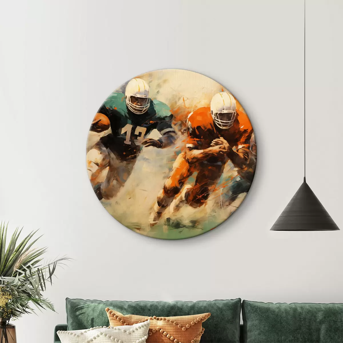 Okrągły obraz Futbol amerykański, gracze z piłką, obraz olejny Nr r39814