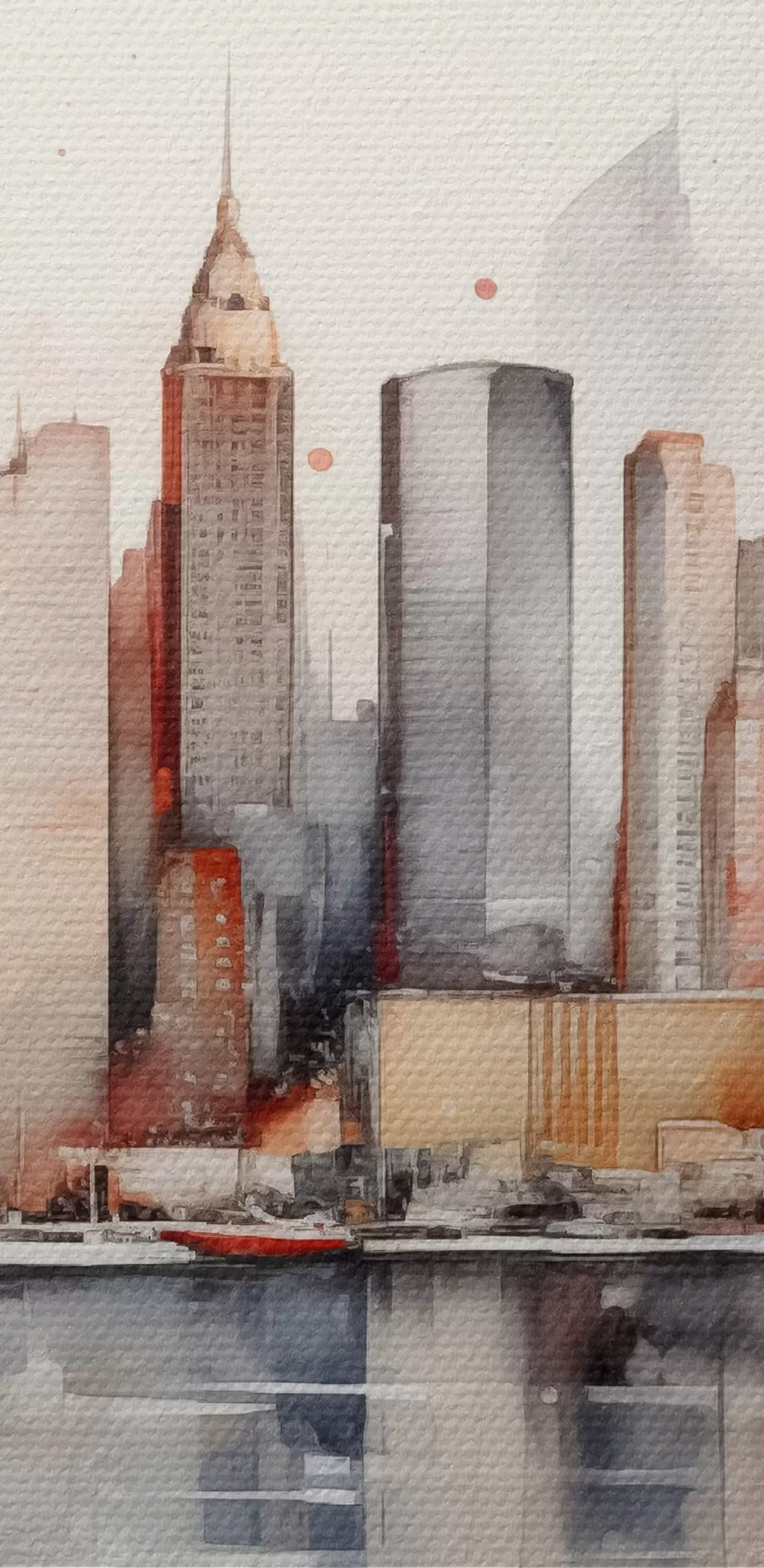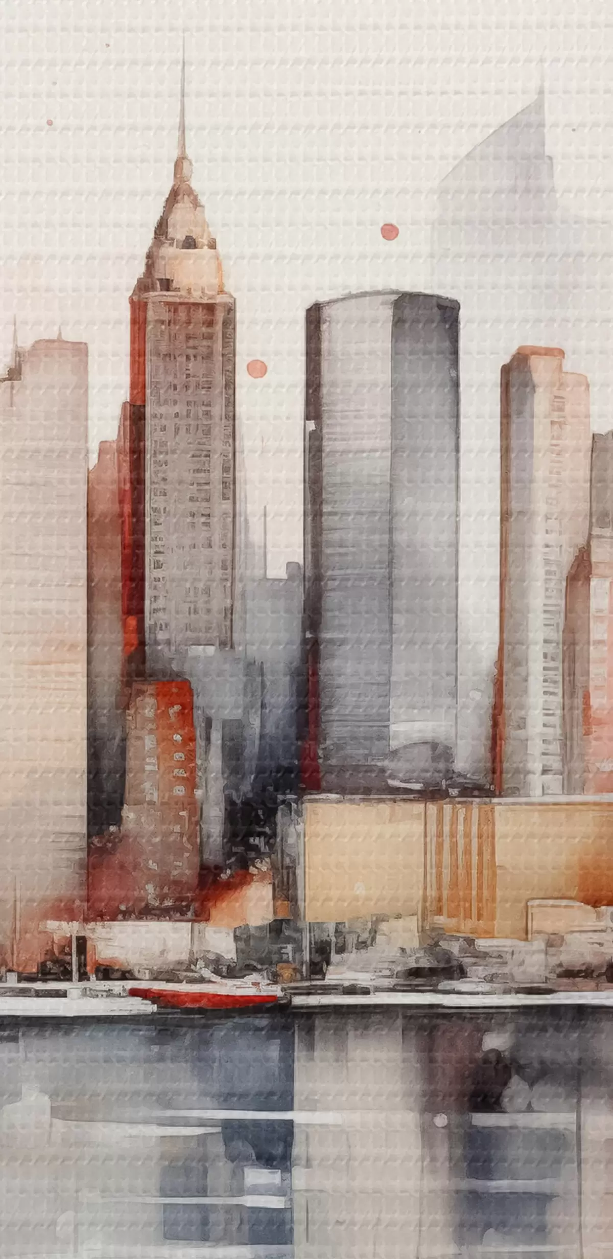 Okrągły obraz Widok na Nowy Jork, sylwetki budynków, akwarela Nr r39828