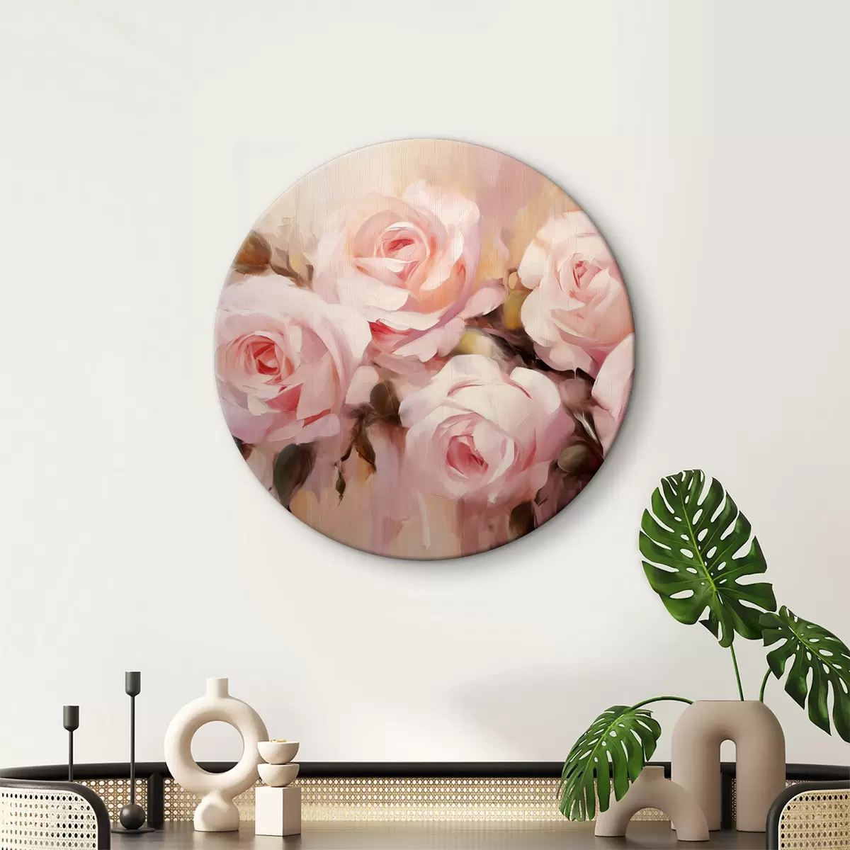 Okrągły obraz Różowe róże na różowym obrazie olejnym Nr r39831
