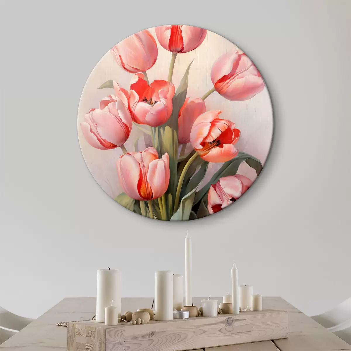 Okrągłe obrazy Różowe czerwone tulipany na jasnym obrazie olejnym r39832