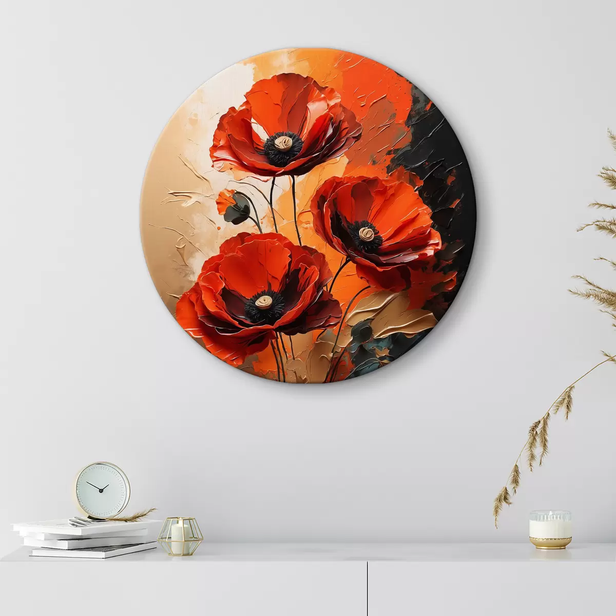 Okrągły obraz Maki na abstrakcyjnym tle Nr r39845