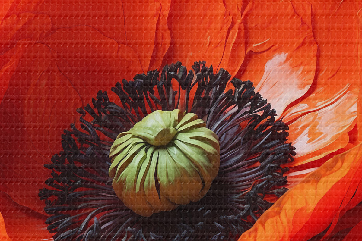 Drobny splot nici na tym płótnie przypomina powierzchnię profesjonalnych płócien artystycznych.