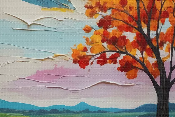 Okrągły obraz Drzewo na tle pola i abstrakcyjnego obrazu olejnego nieba Nr r39851