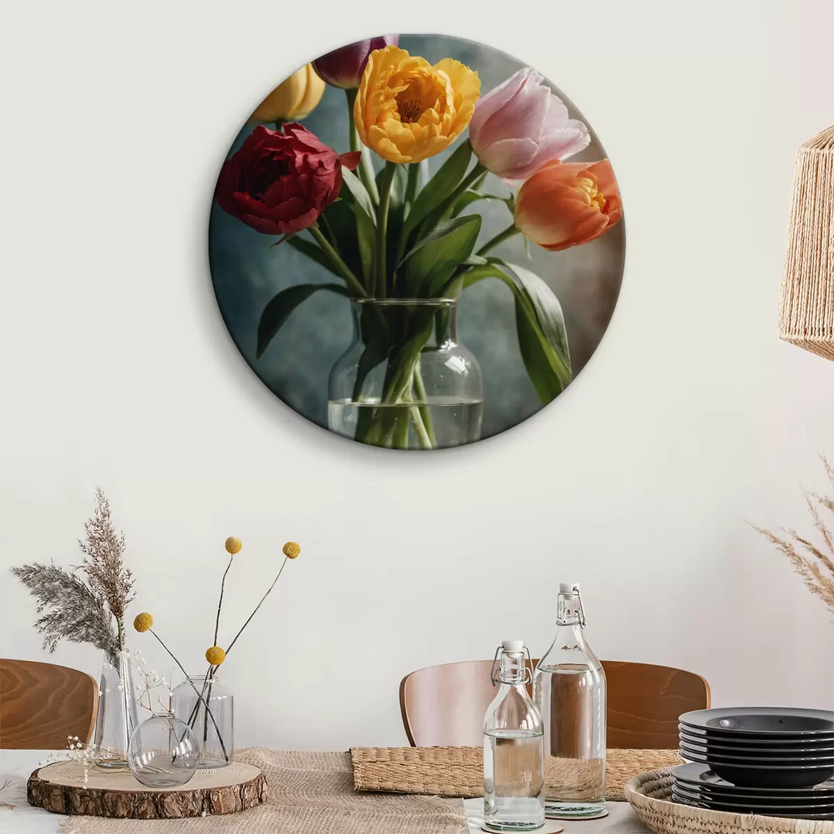 Okrągłe obrazy Bukiet kwiatów w przezroczystym wazonie r39862