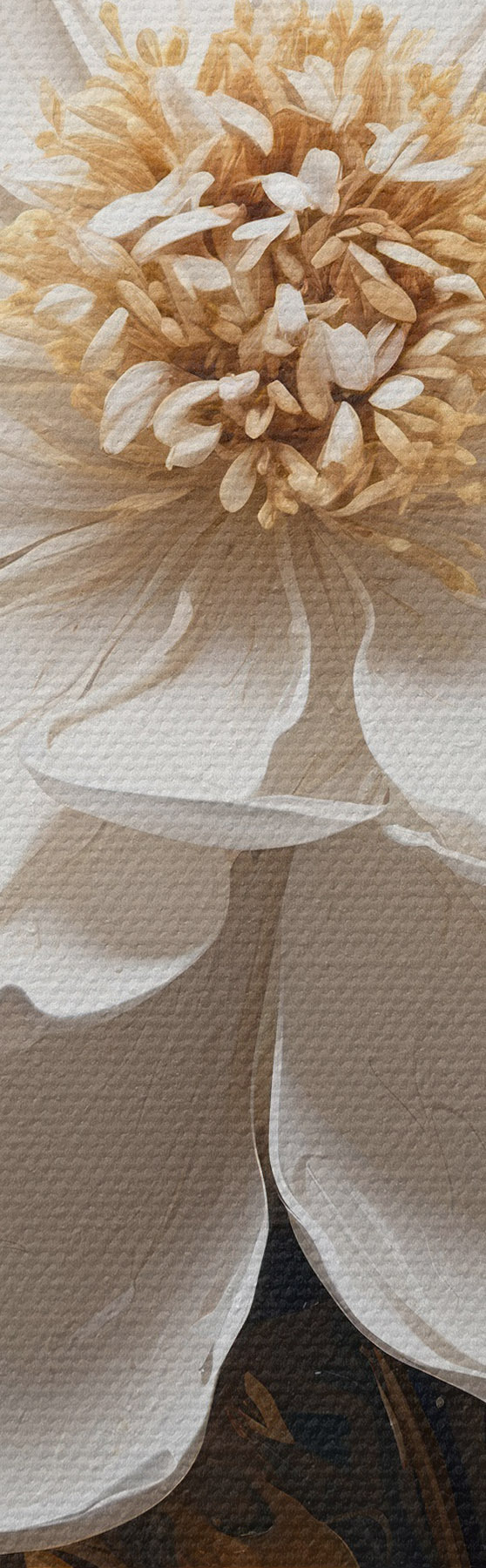 Drobny splot nici na tym płótnie przypomina powierzchnię profesjonalnych płócien artystycznych.