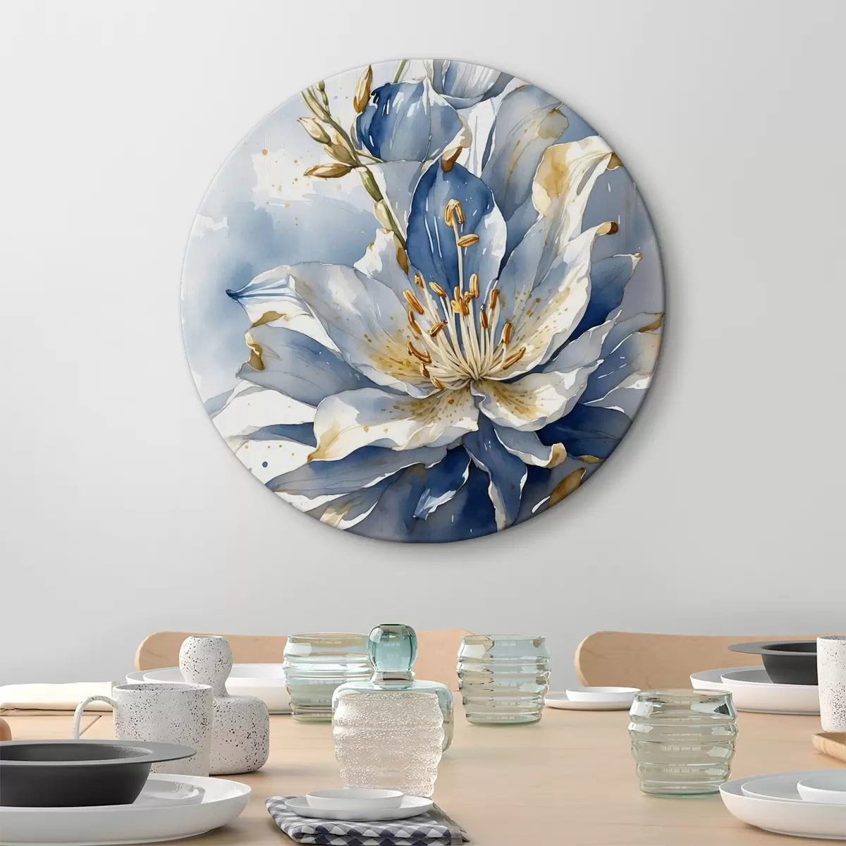 Okrągłe obrazy Niebieska lilia z akwarelą r39872
