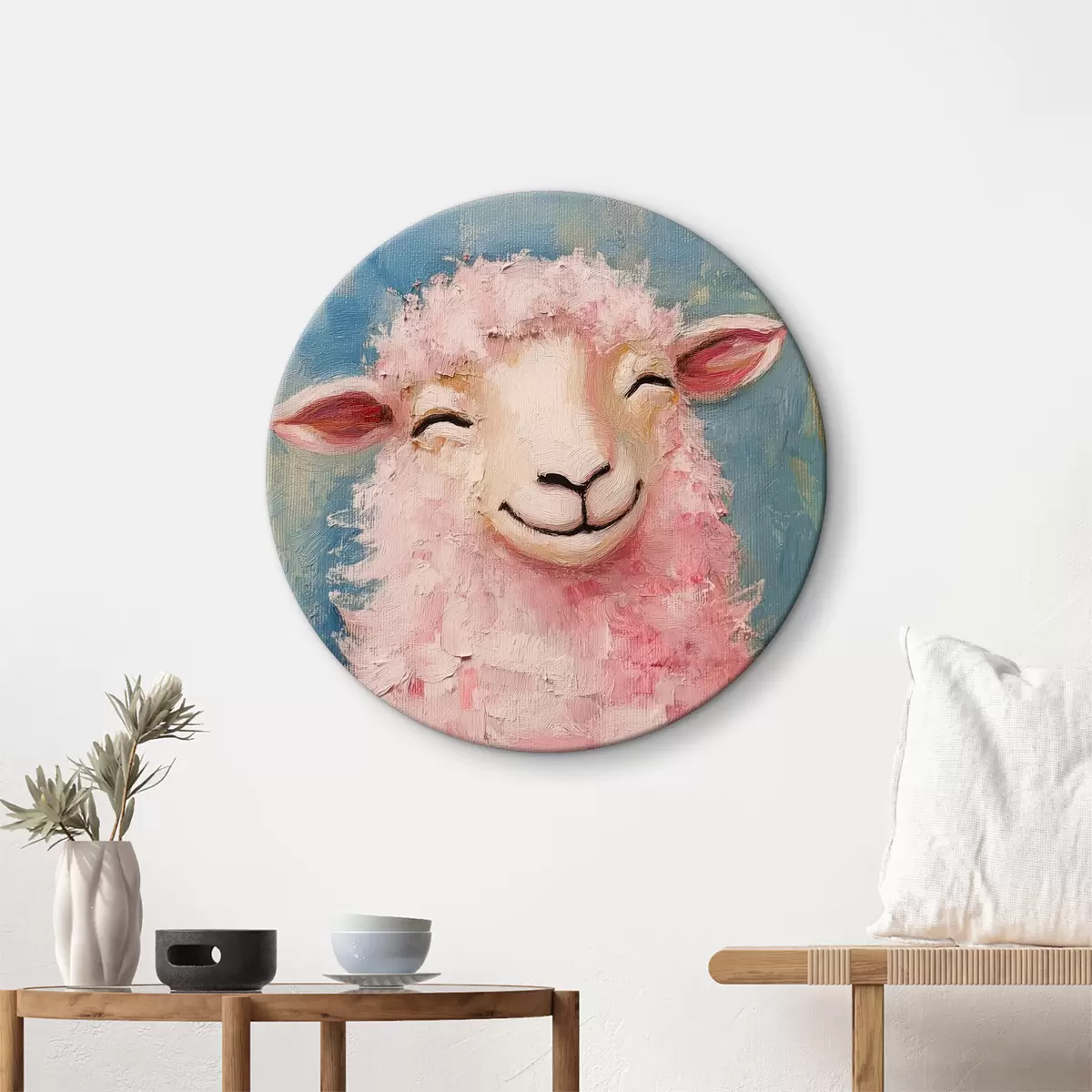 Okrągłe obrazy Wesoły baran z różową wełną r39911
