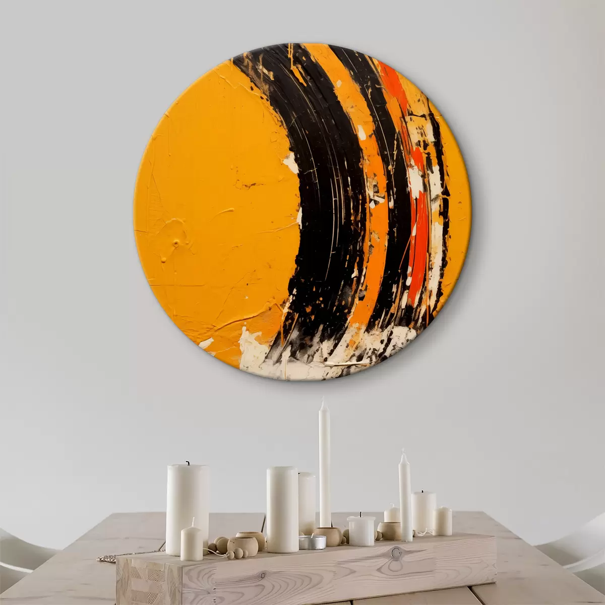 Okrągły obraz Abstrakcyjne czarne paski na żółtym obrazie olejnym Nr r39923