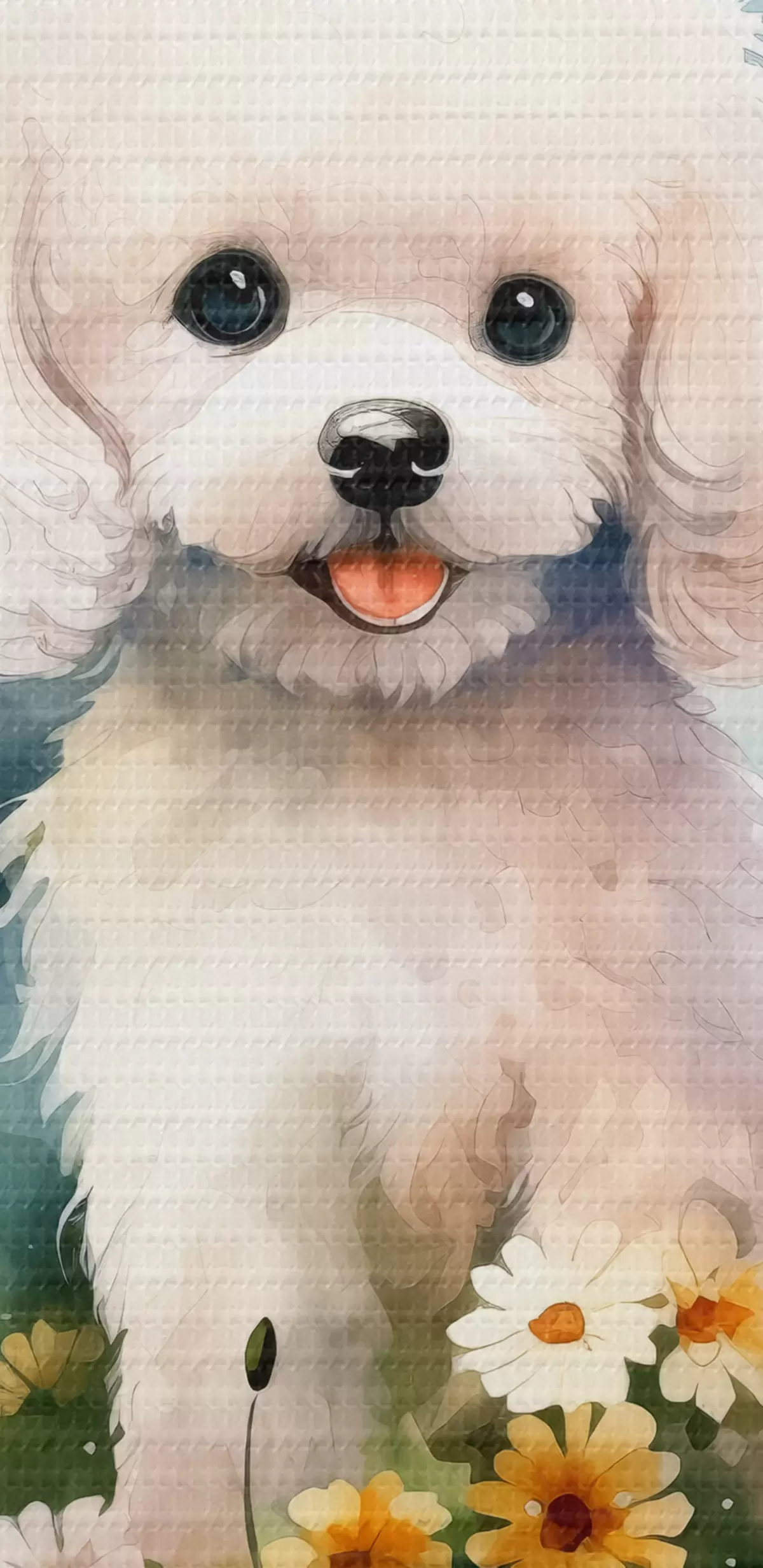 Okrągły obraz Mały biały pudel siedzący w akwareli kwiatów Nr r39928