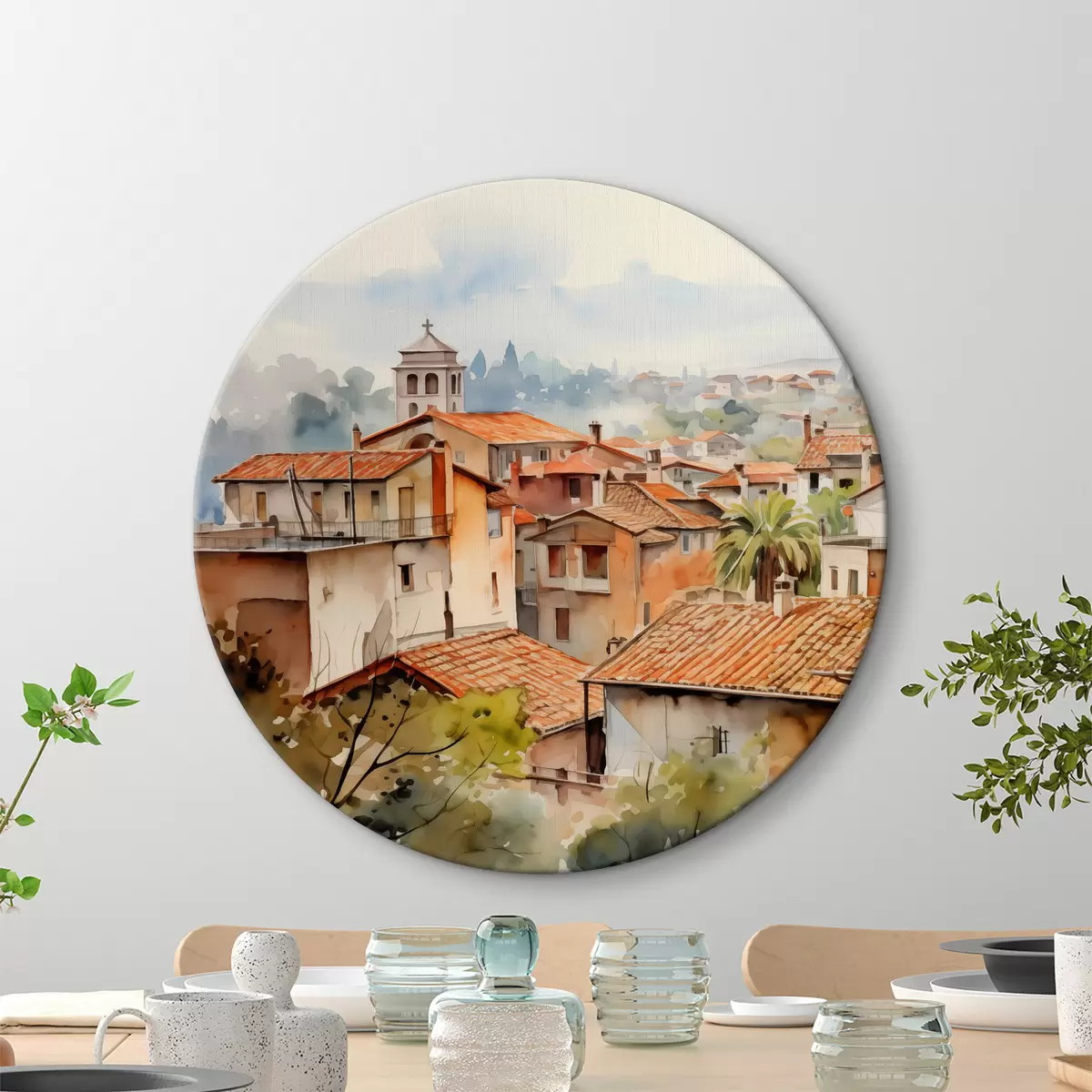 Okrągły obraz Włoska wieś akwarela Nr r39935