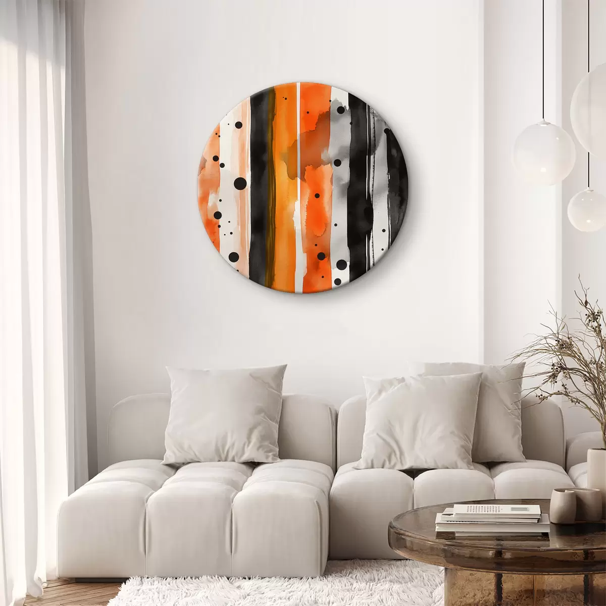Okrągły obraz Paski,akwarela,czarny,pomarańczowy Nr r39948