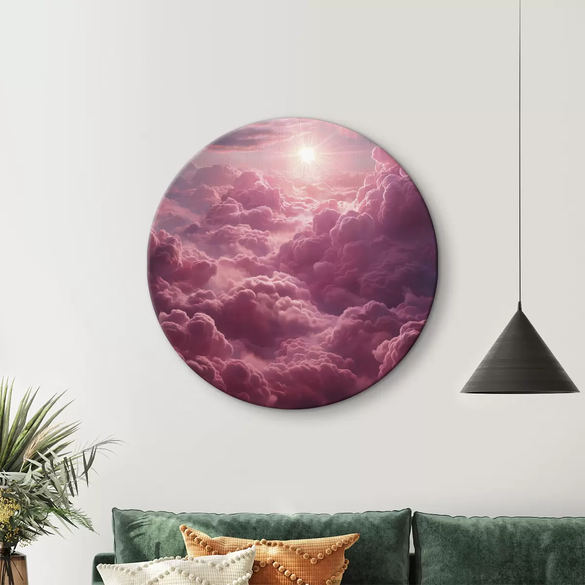 Okrągły obraz Fioletowe i różowe chmury, eteryczne, zachód słońca, realizm Nr r39970