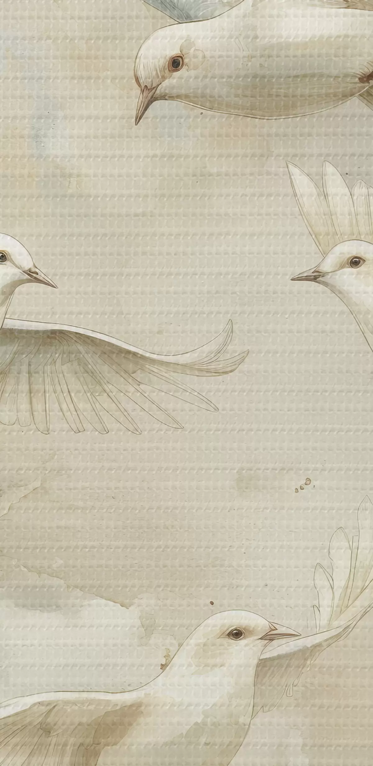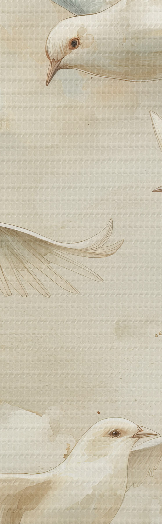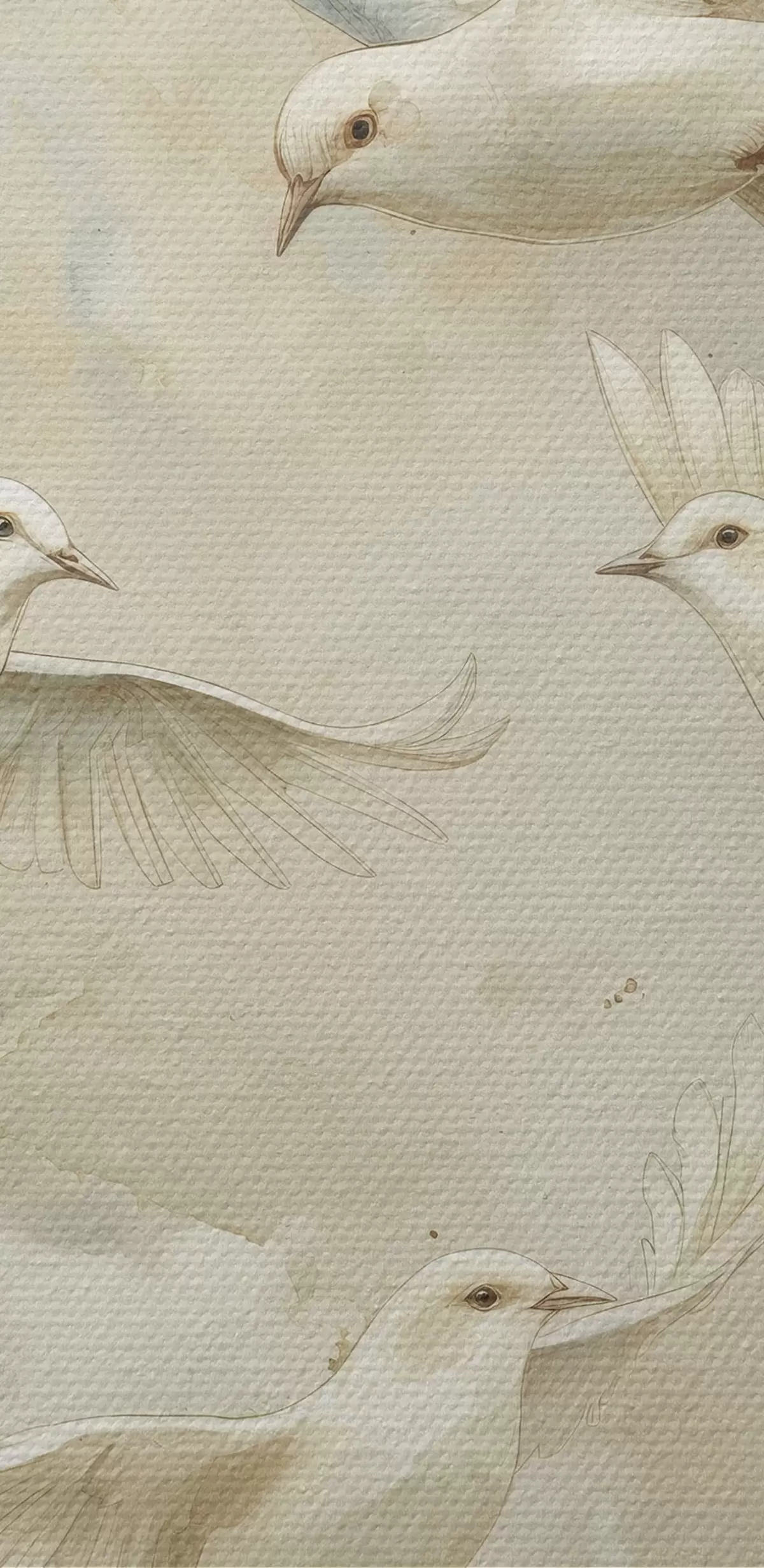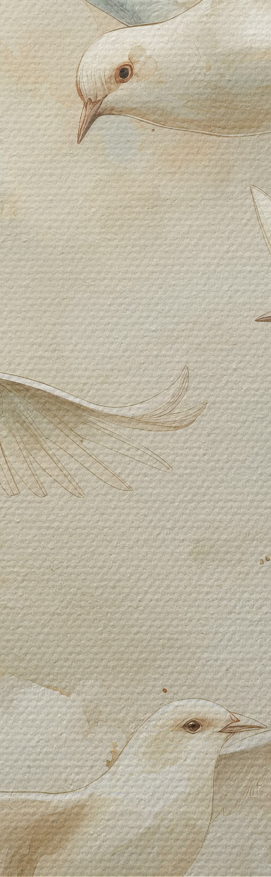 Okrągłe obrazy Akwarelowe ptaki latające, delikatne beżowe i białe kolory, gołębie r39976