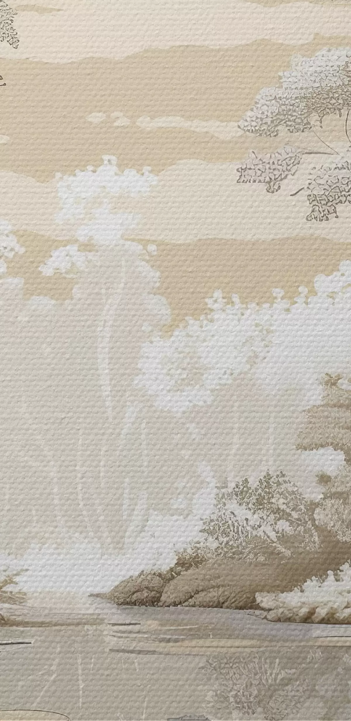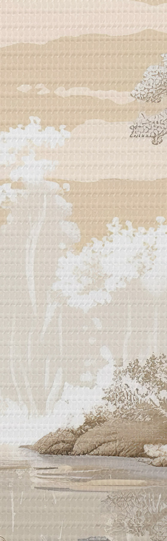 Okrągłe obrazy Piękny leśny krajobraz, delikatne pastelowe kolory, beż i biel r39978