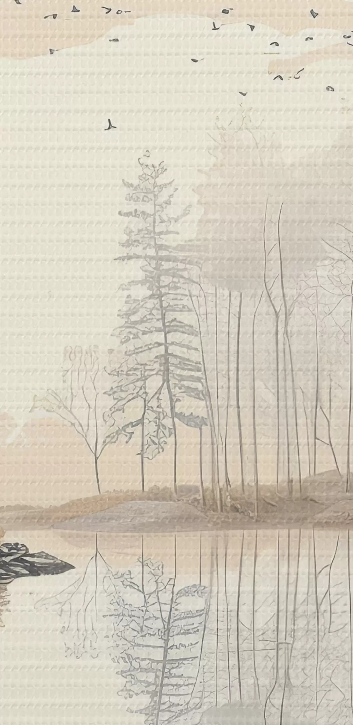 Okrągłe obrazy Piękny krajobraz natury, staw i drzewa, dzika przyroda, delikatne pastelowe kolory r39980