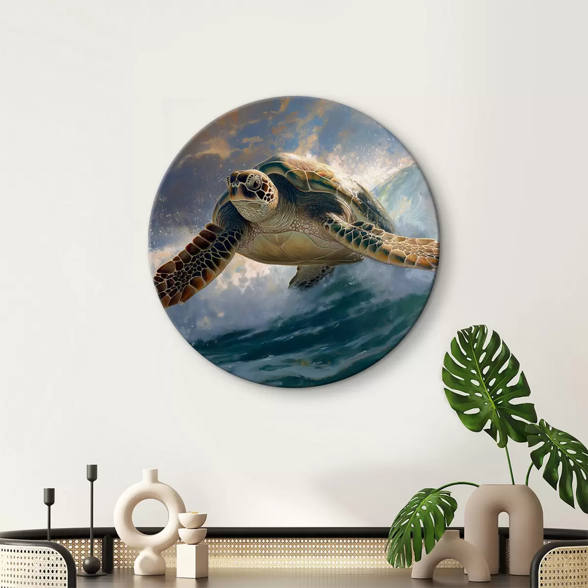 Okrągły obraz Żółw, woda, zielony, niebieski Nr r40001