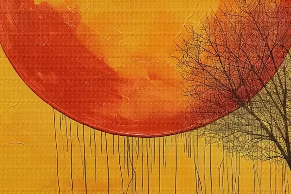 Okrągły obraz Dervo, zachód słońca, czerwony, żółty Nr r40006