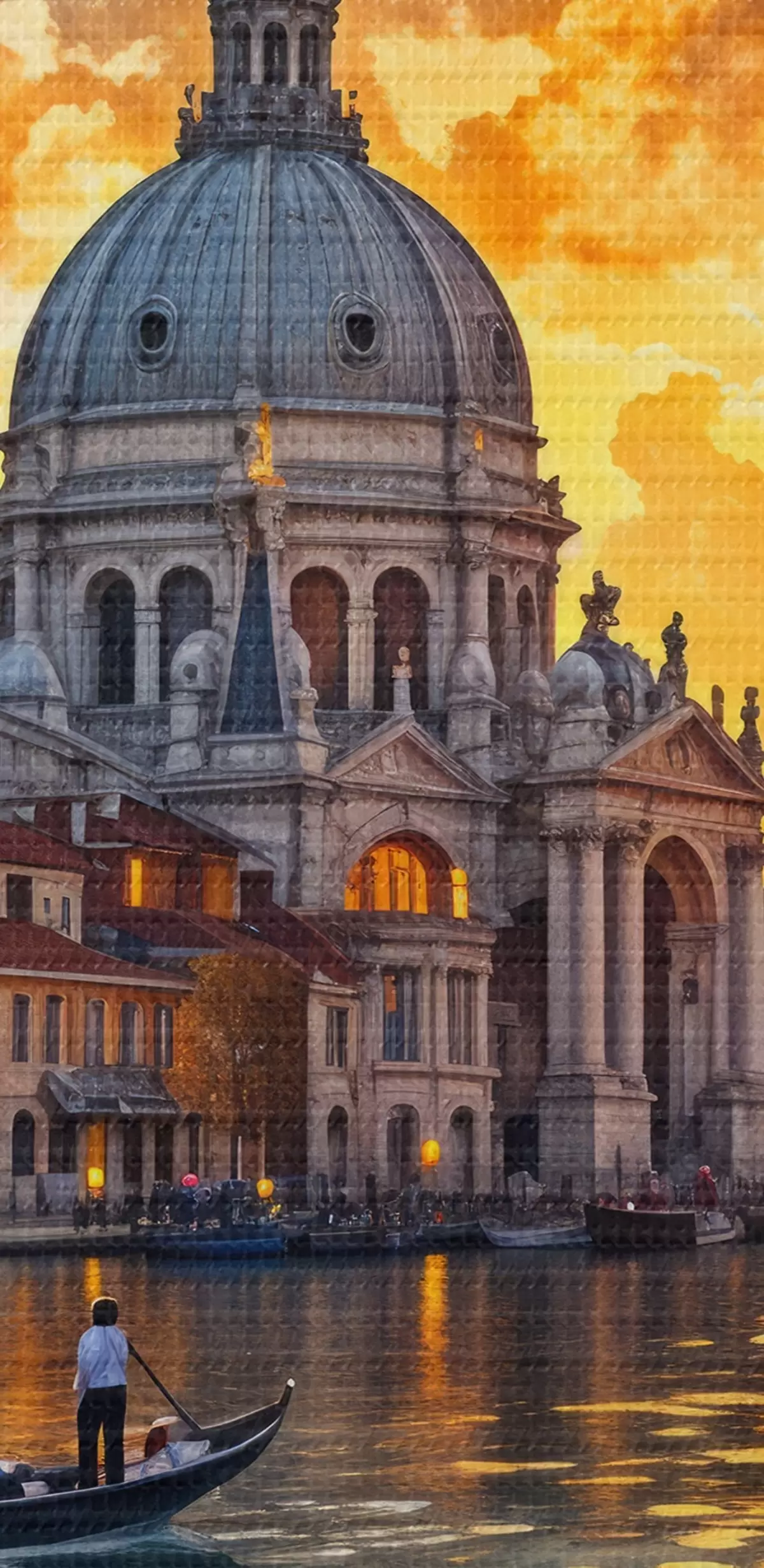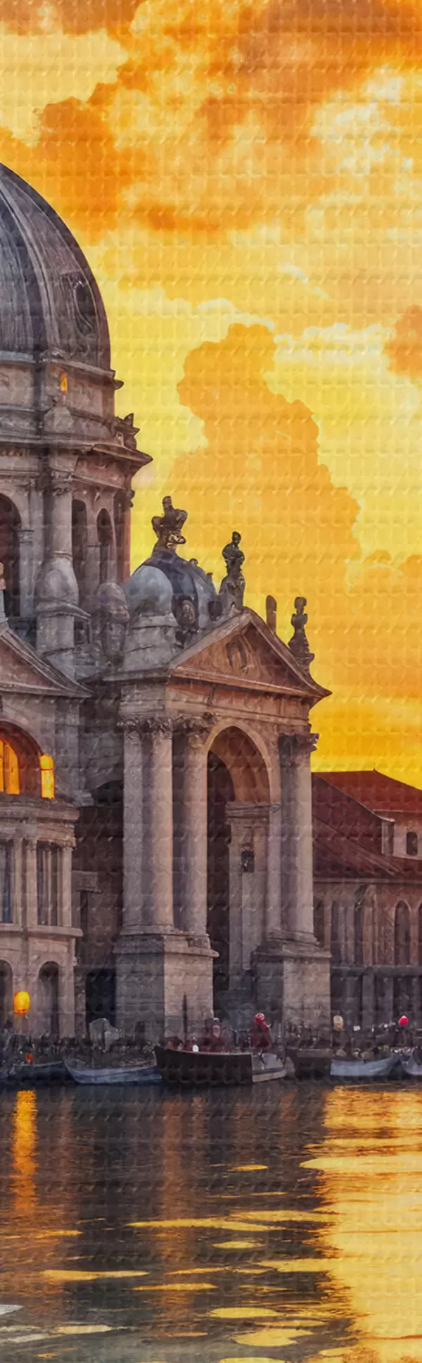 Okrągły obraz Kolorowy i dramatyczny zachód słońca nad Canal Grande w Wenecji, Włochy, akwarela Nr r40027