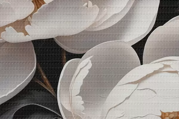 Okrągły obraz Duże, białe kwiaty na ciemnym tle Nr r40040