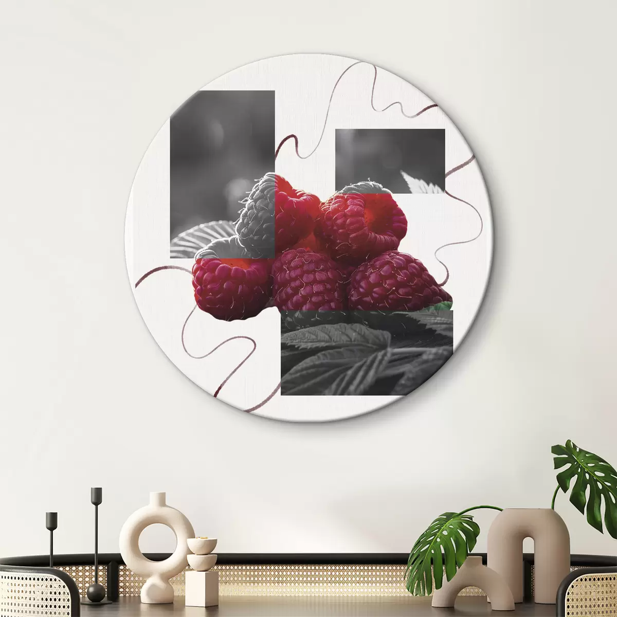 Okrągły obraz Maliny, sztuka abstrakcyjna, fotorealizm, letnie jagody Nr r40045