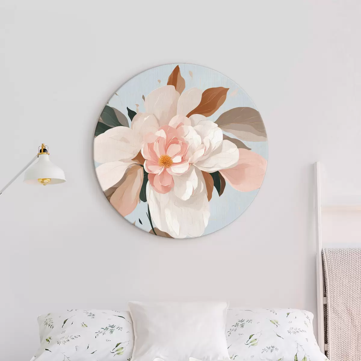 Okrągły obraz Kwiat z bliska na niebieskim tle Nr r40057
