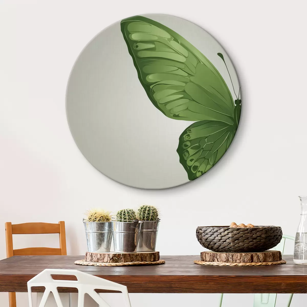 Okrągłe obrazy Lewe skrzydło zielonego motyla na białym tle r40062